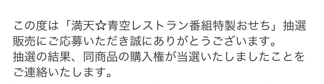 また、 青空レストランのおせちの抽選結果、見事当選した方にはこのような内容のメールが来るようです↓